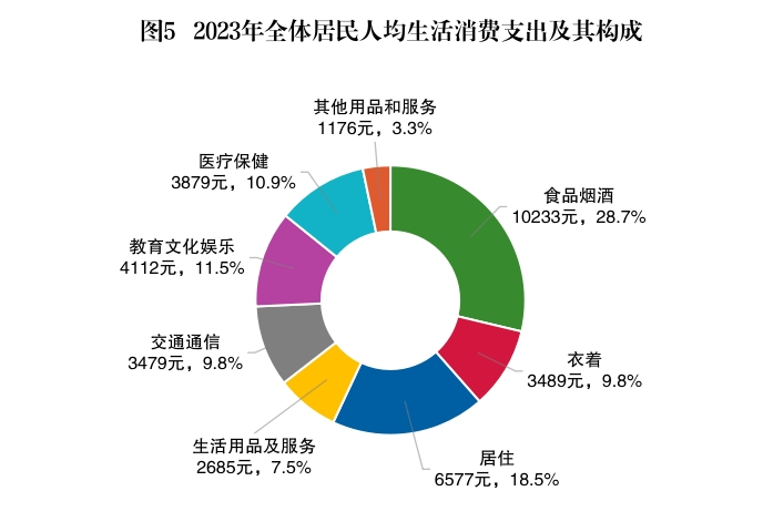 全体居民人均生活消费支出35630元,比上年增长17.1%。按常住地分,城镇常住居民人均生活消费支出38390元,增长16.9%;农村牧区常住居民人均生活消费支出18457元,增长19.1%。全体居民恩格尔系数为28.7%,其中,城镇为27.0%,农村牧区为28.9%。