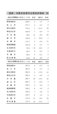 一般公共预算收入(亿元) 1-11月 位次 增长% 位次