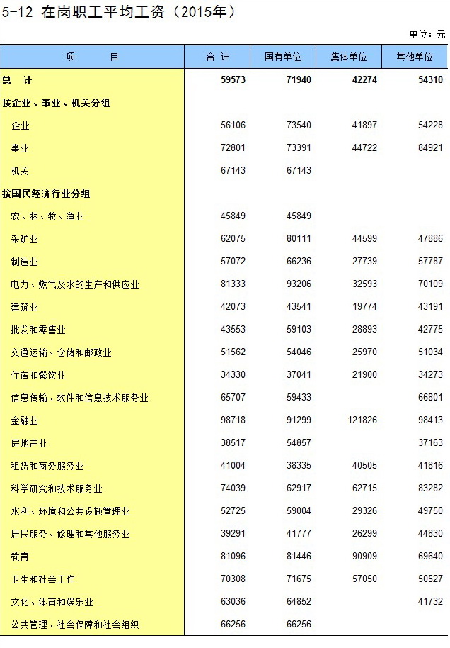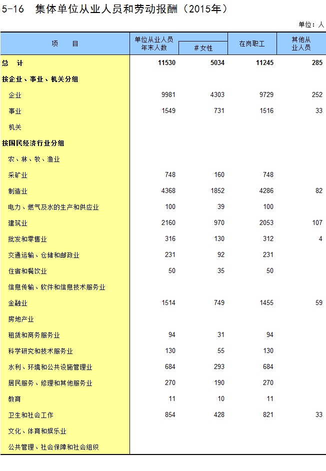 5-16 集体单位从业人员和劳动报酬(2015年)