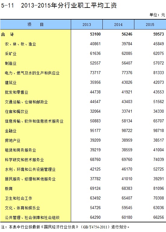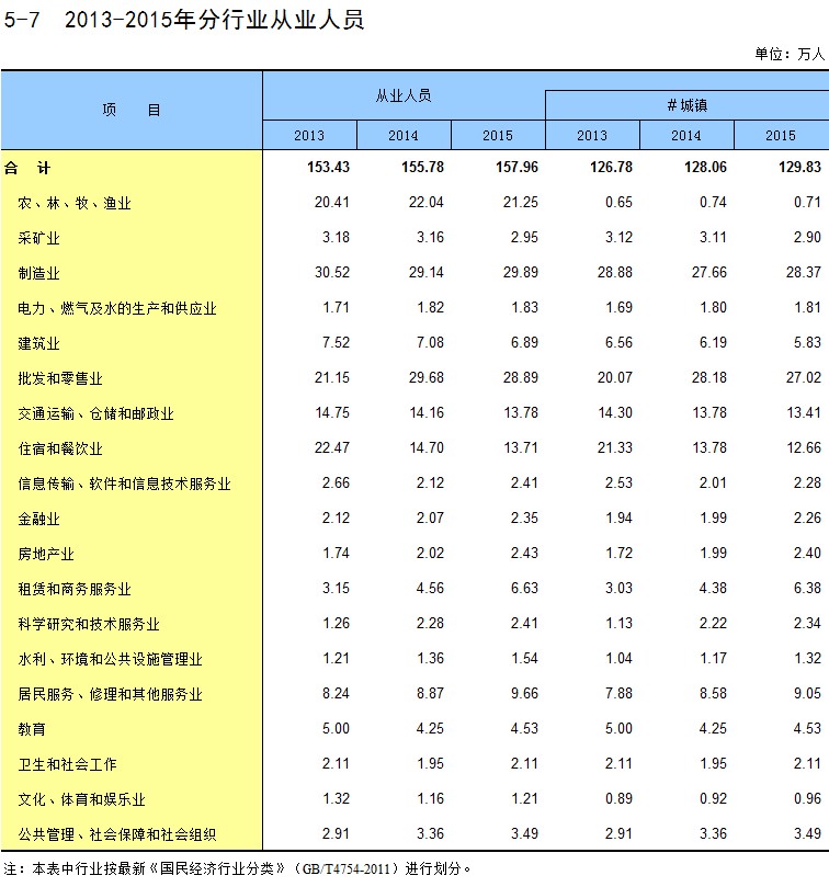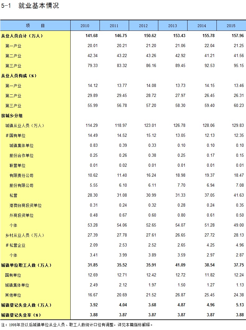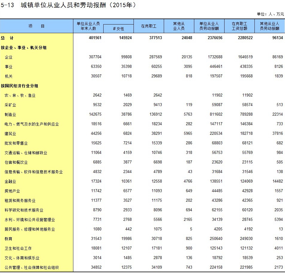 5-13 城镇单位从业人员和劳动报酬(2015年)