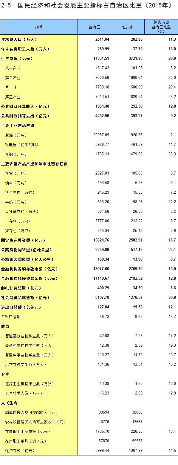 2-5 国民经济和社会发展主要指标占自治区比重(2015年)