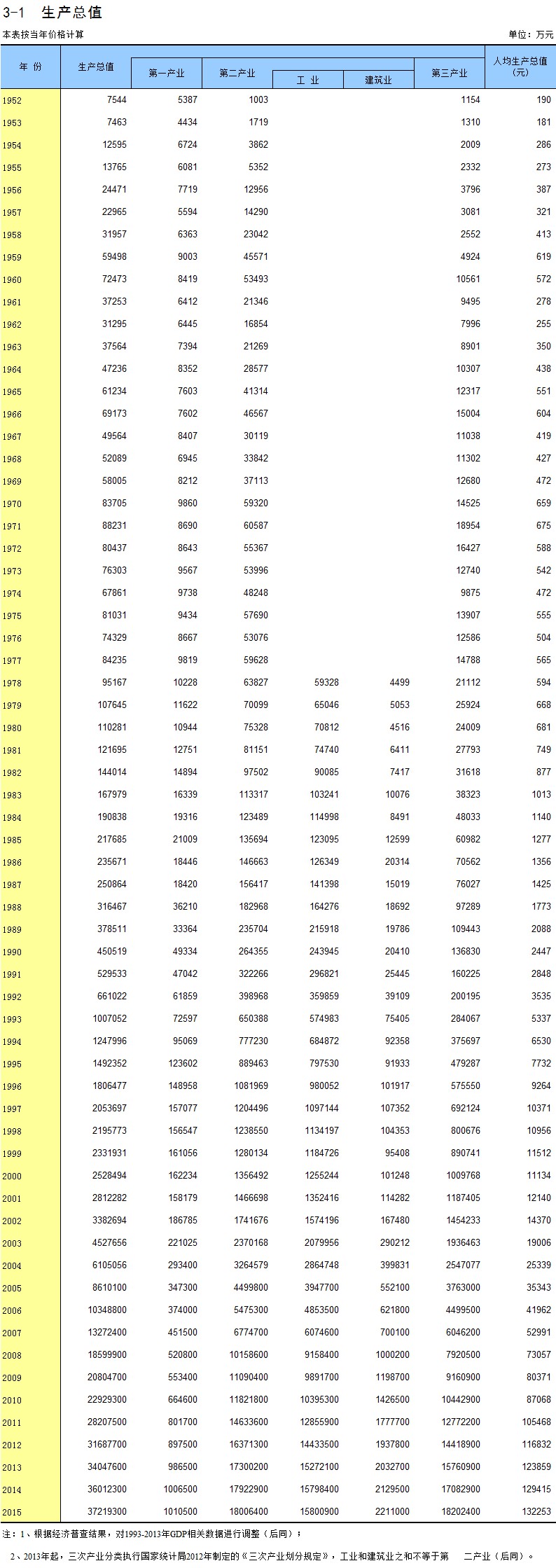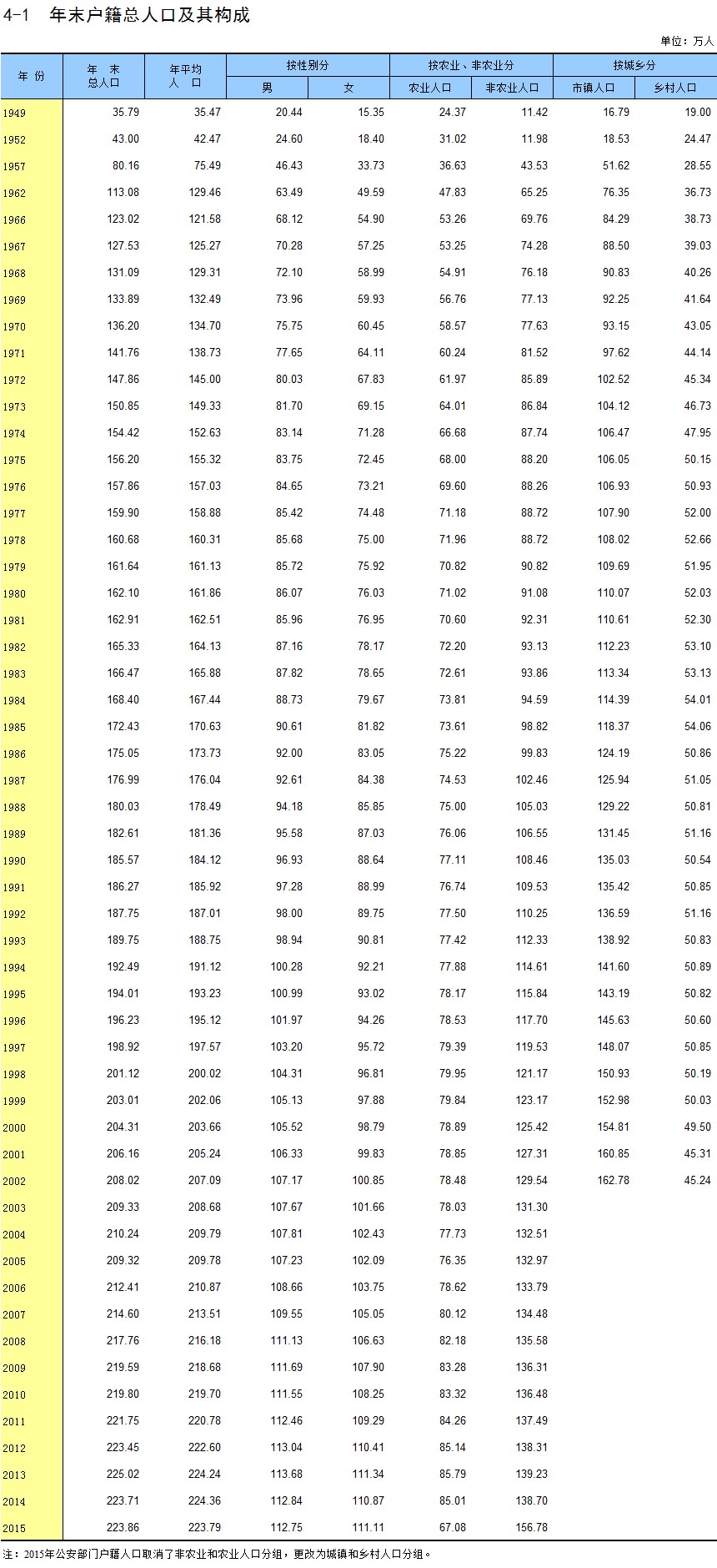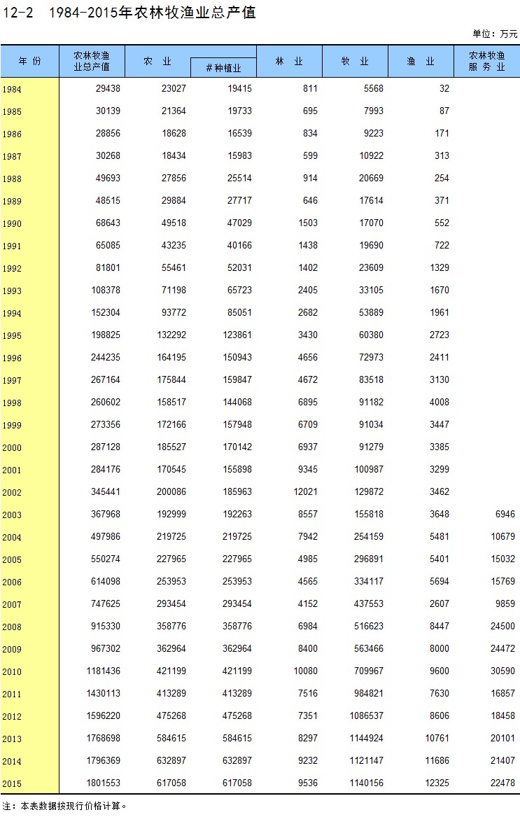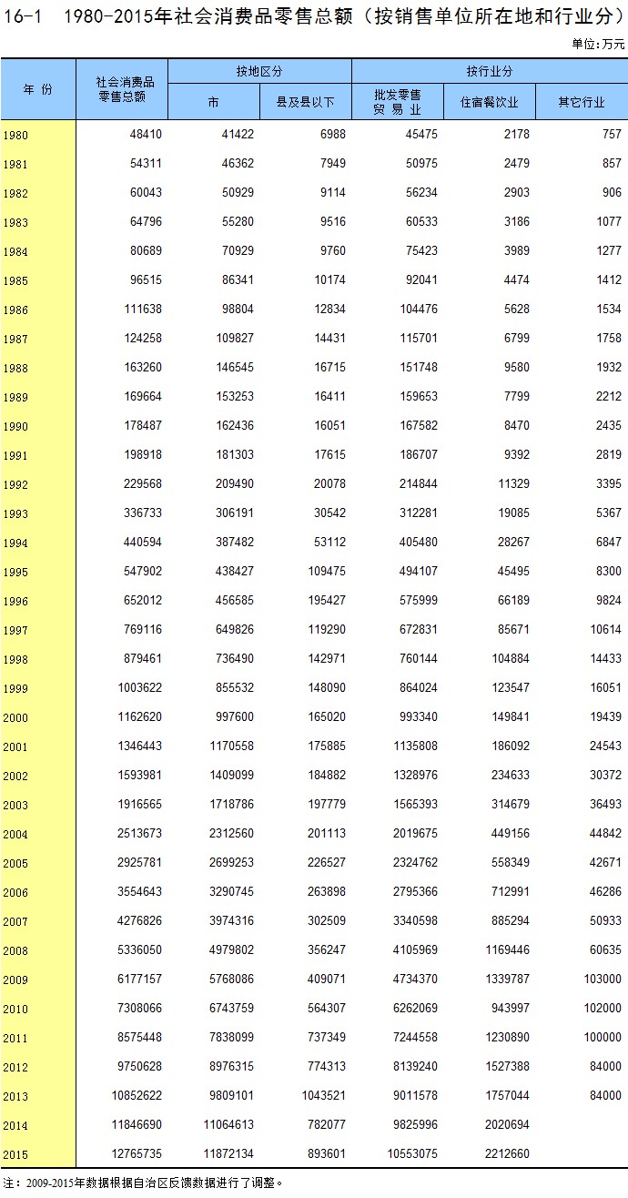 16-1 1980-2015年社会消费品零售总额(按销售单位所在地和行业分)