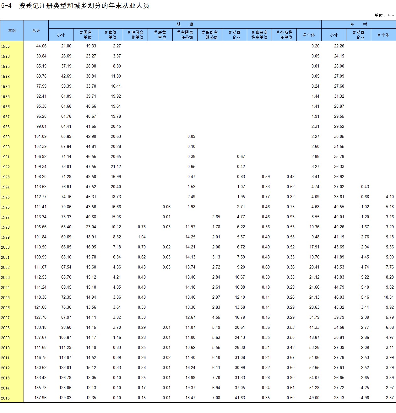 5-4 按登记注册类型和城乡划分的年末从业人员