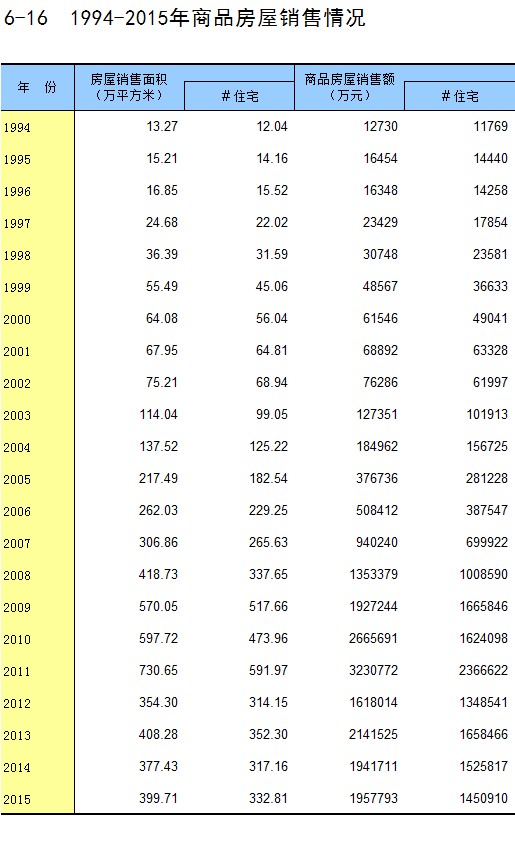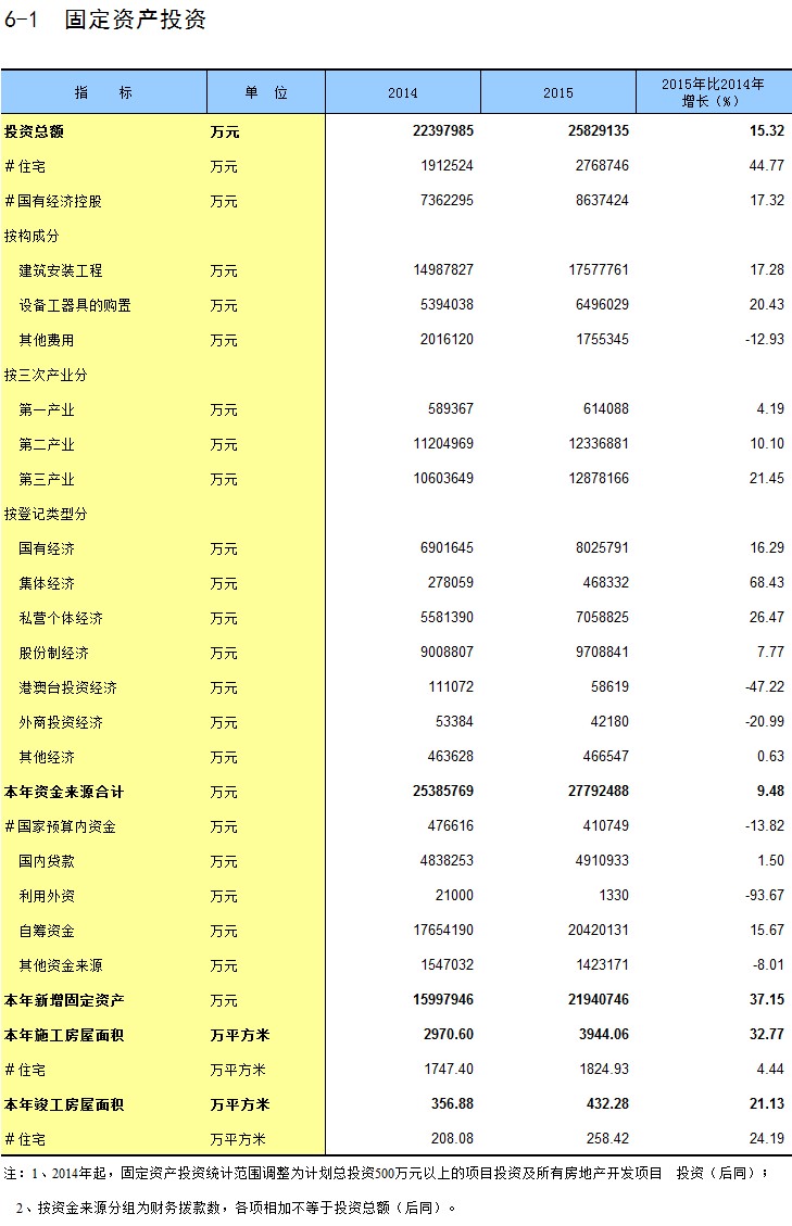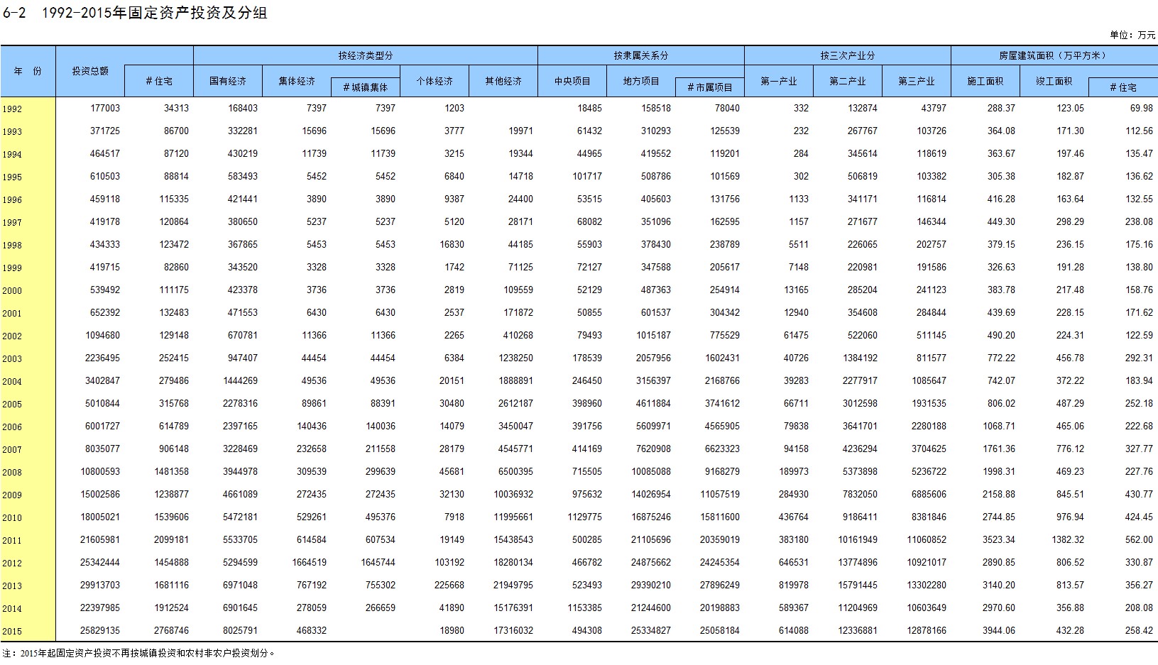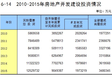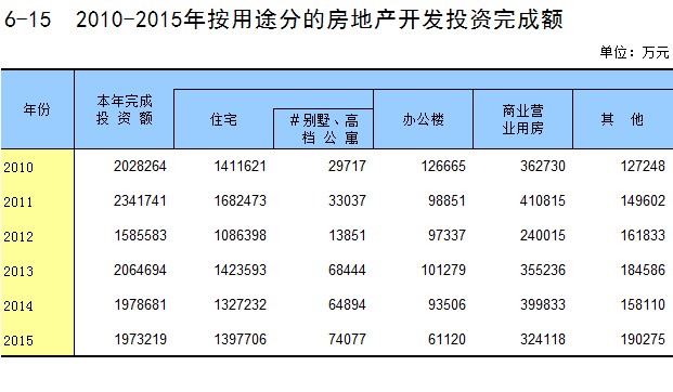 6-15 2010-2015年按用途分的房地产开发投资完成额