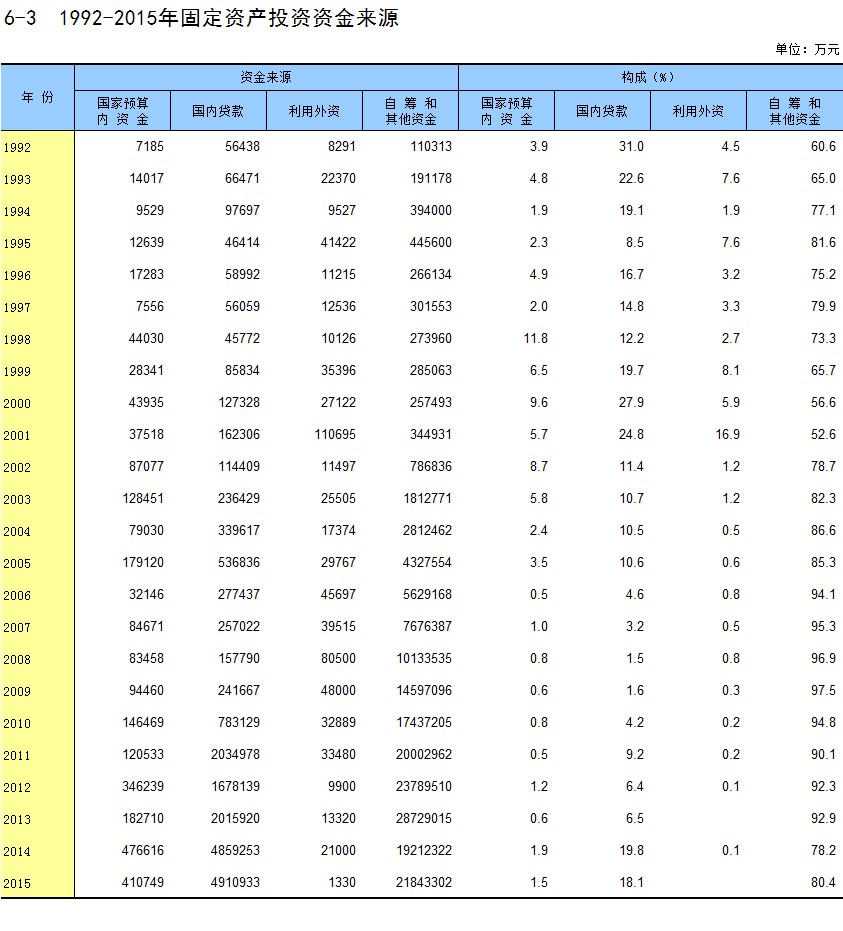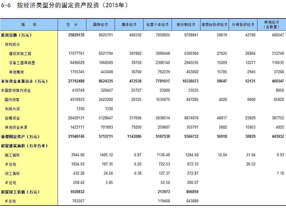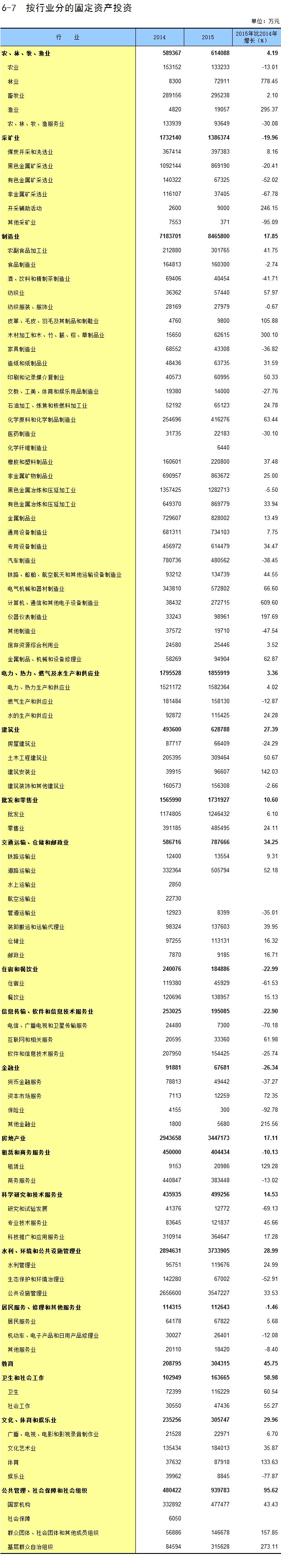 6-9 国民经济各行业按建设性质分的固定资产投资(2015年)