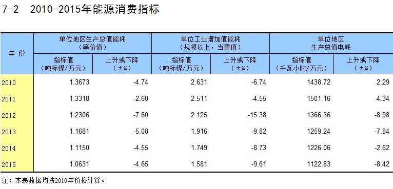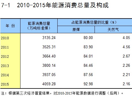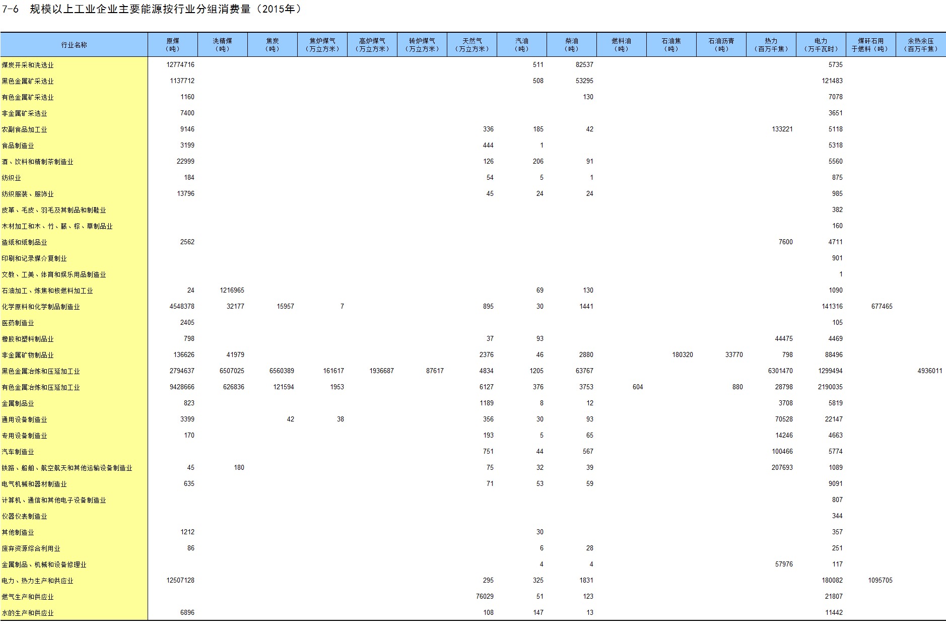 7-6 规模以上工业企业主要能源按行业分组消费量(2015年)