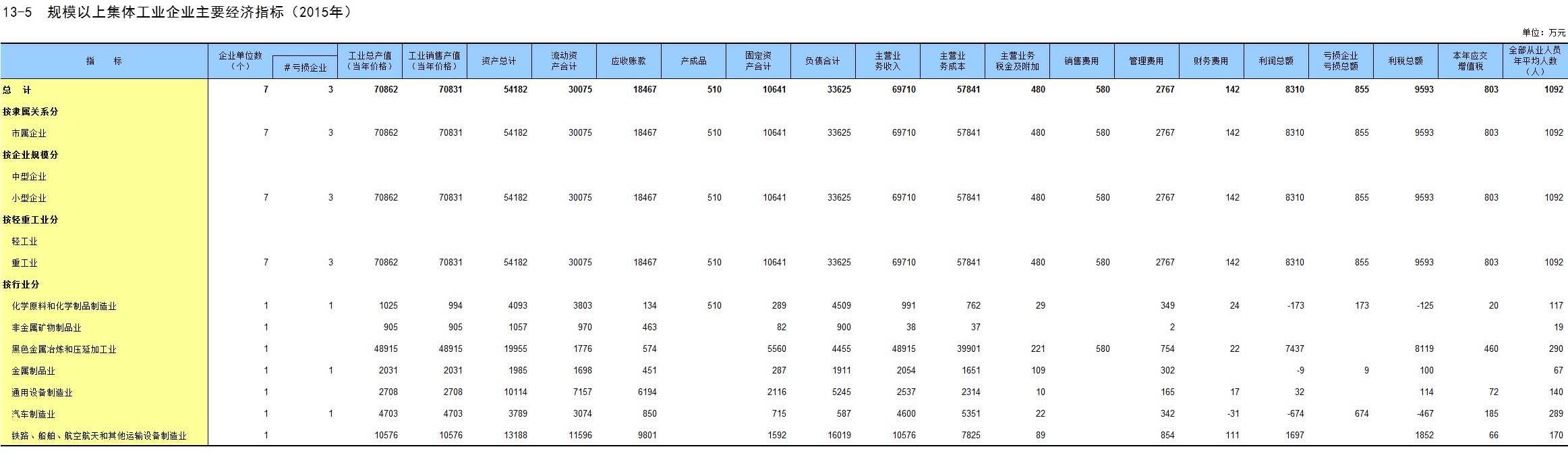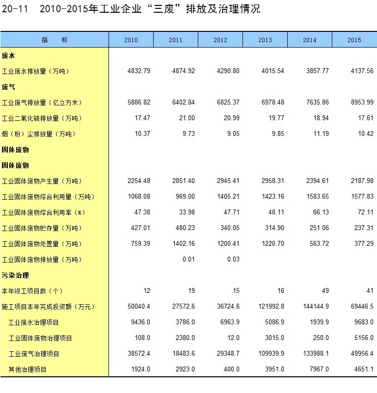 20-11 2010-2015年工业企业“三废”排放及治理情况