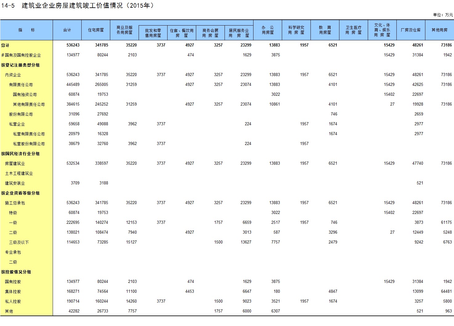14-5 建筑业企业房屋建筑竣工价值情况(2015年)