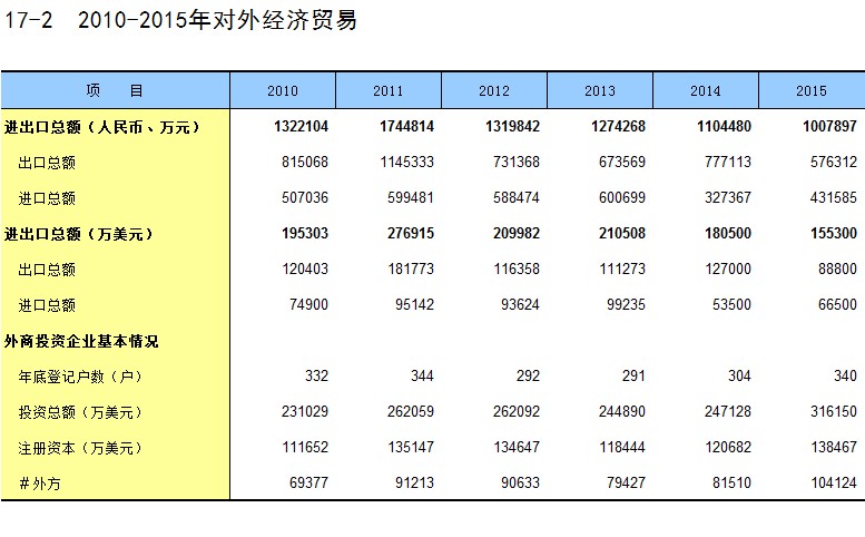 17-1 1991-2015年利用外资和外贸进出口贸易总额
