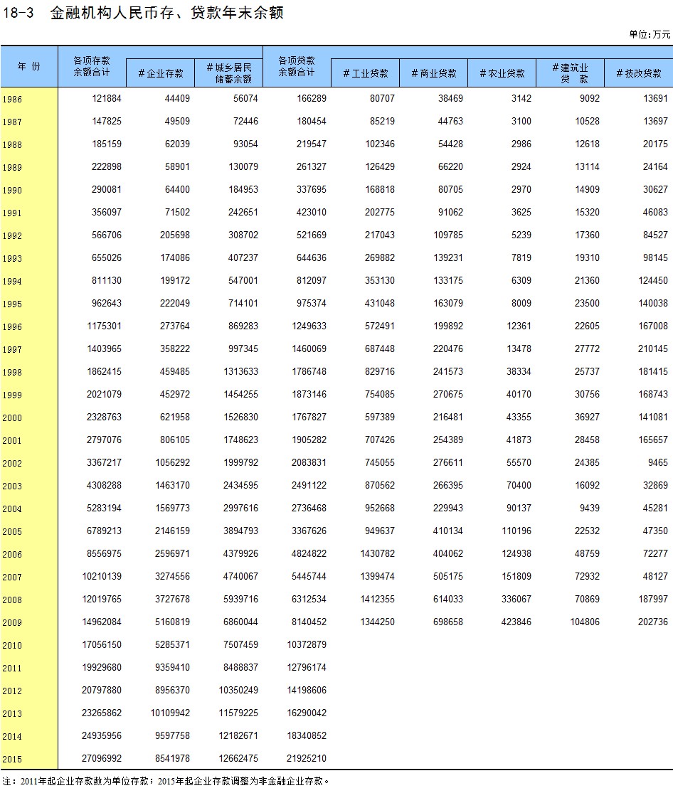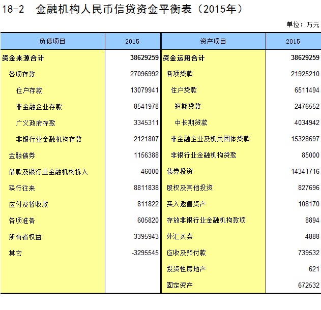 18-2 金融机构人民币信贷资金平衡表(2015年)