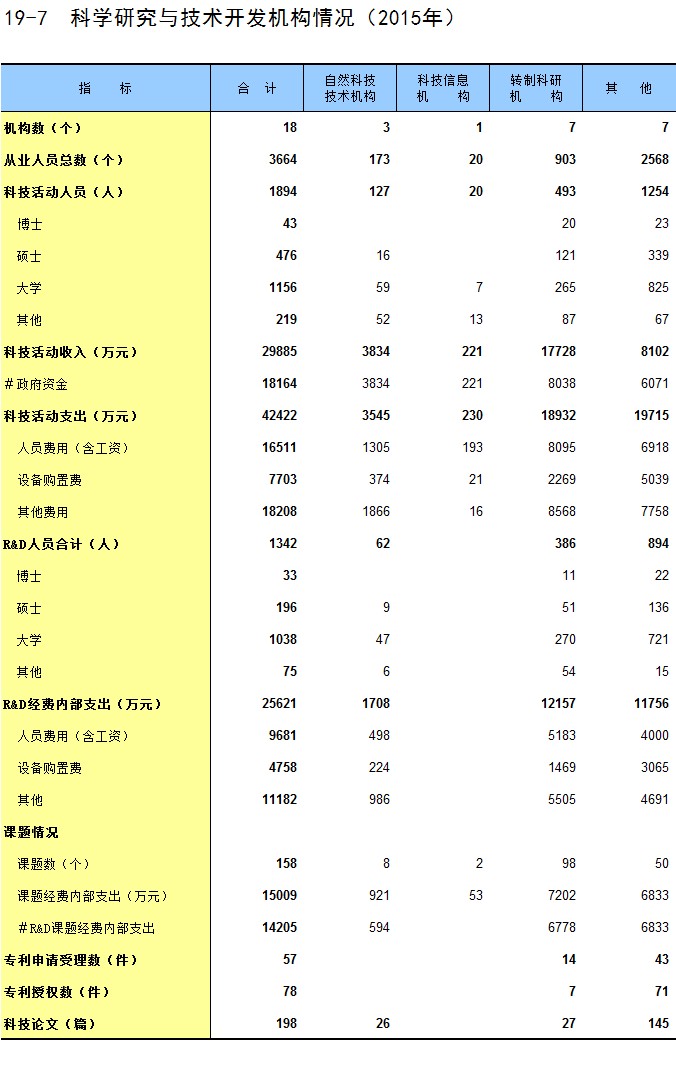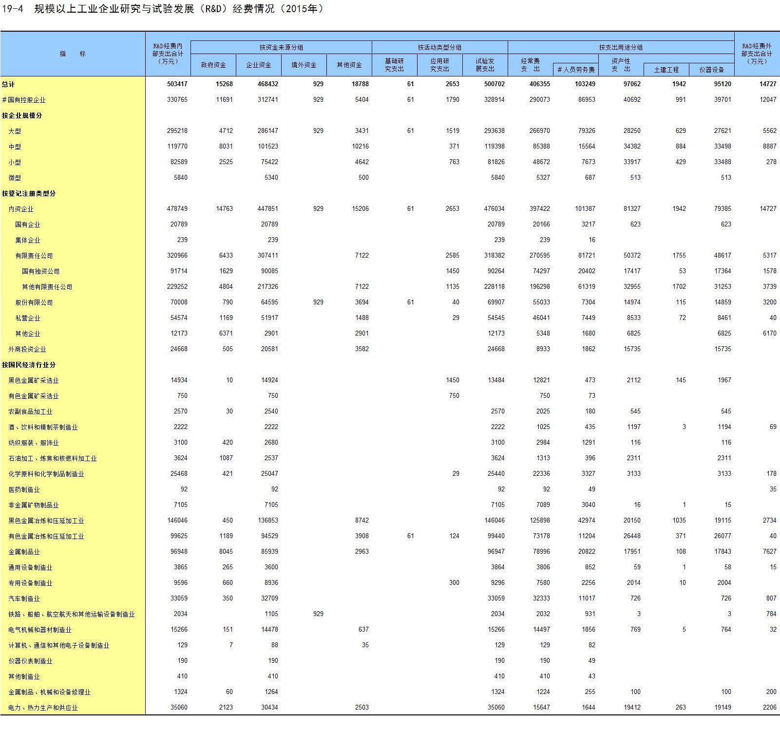 19-4 规模以上工业企业研究与试验发展(R&D)经费情况(2015年)