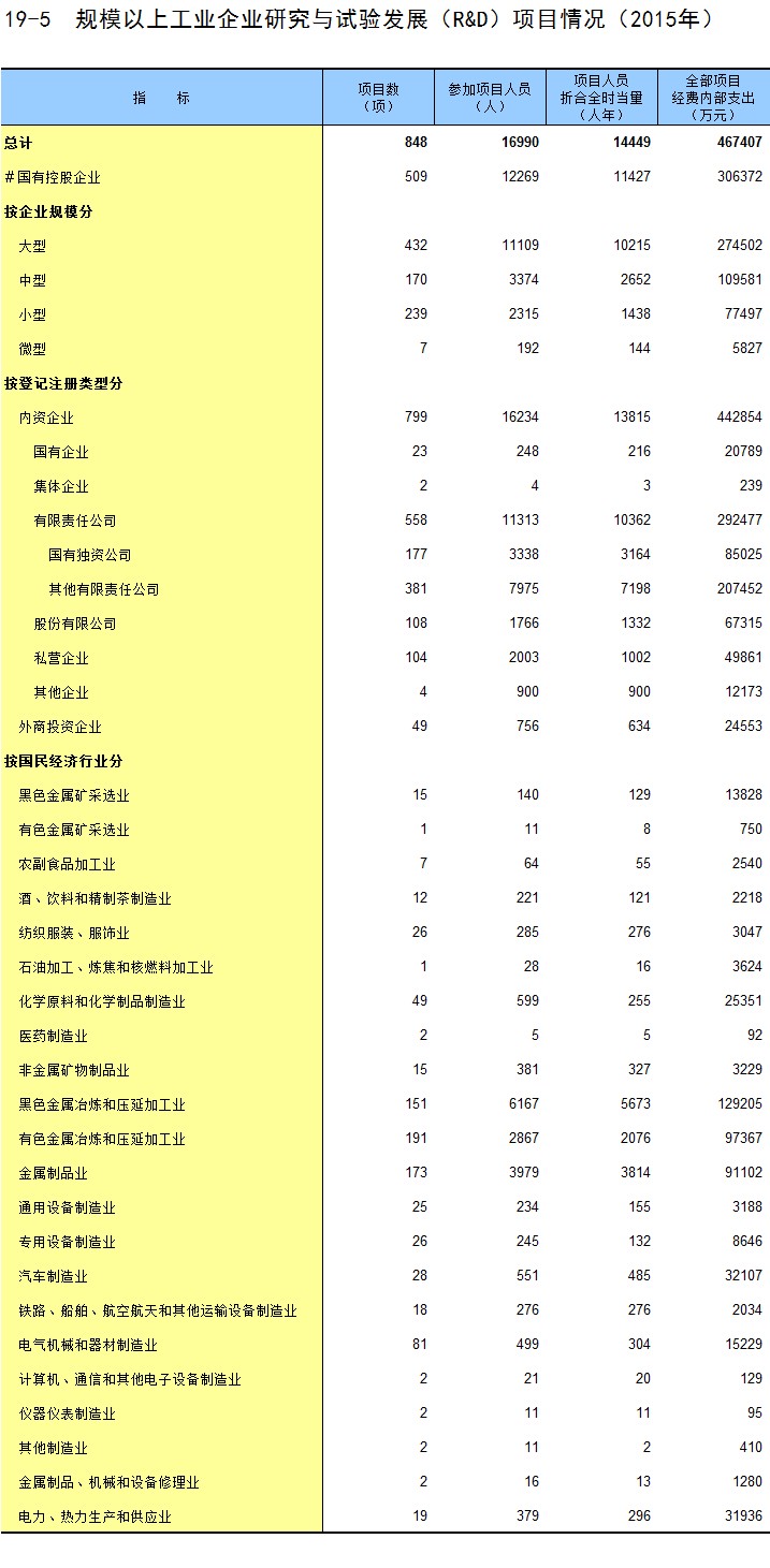 19-5 规模以上工业企业研究与试验发展(R&D)项目情况(2015年)