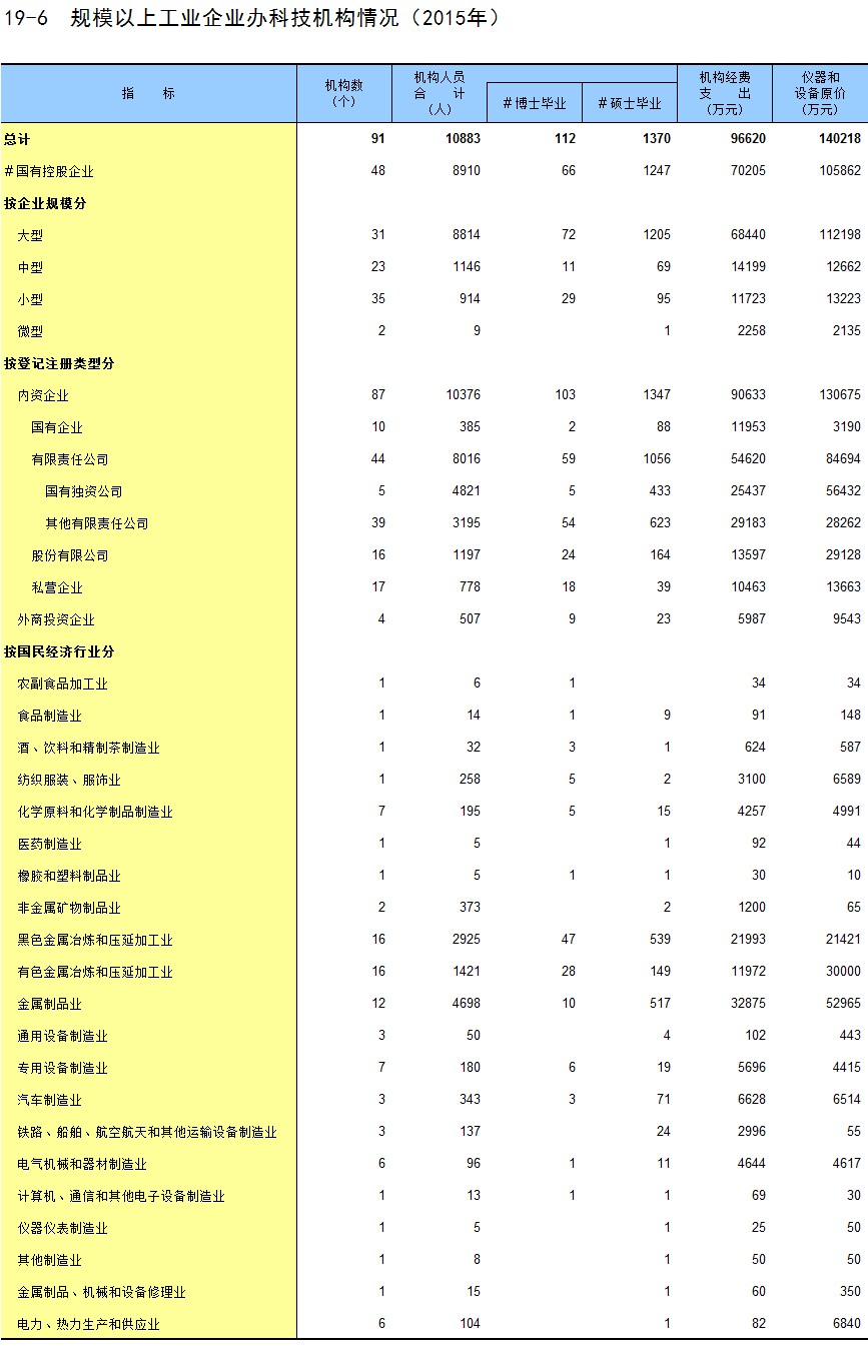 19-6 规模以上工业企业办科技机构情况(2015年)