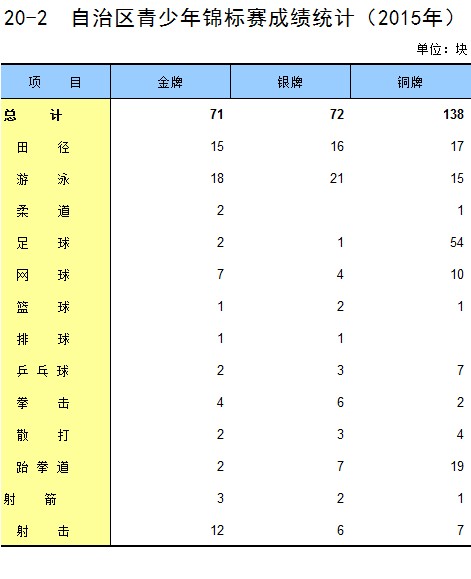 20-2 自治区青少年锦标赛成绩统计(2015年)