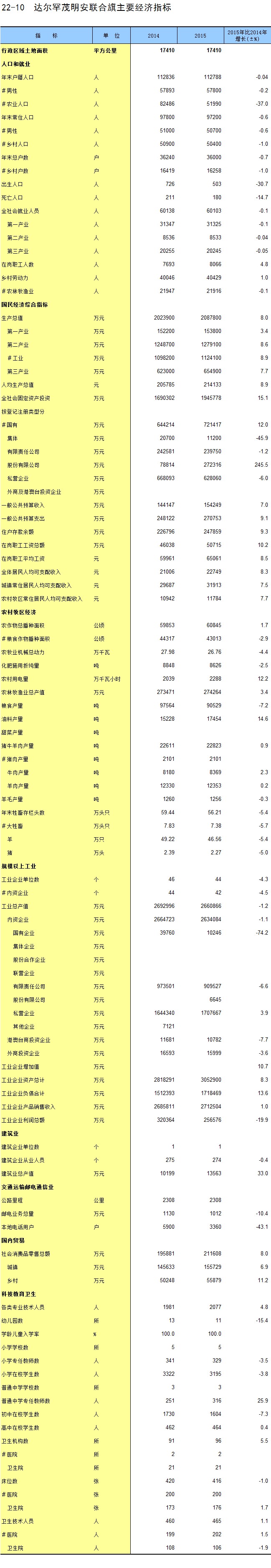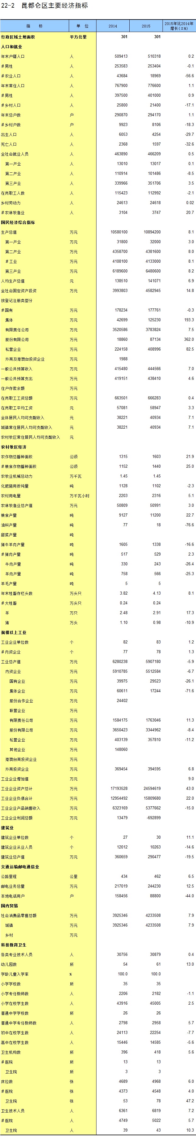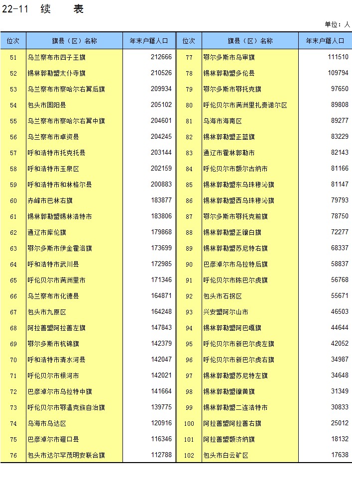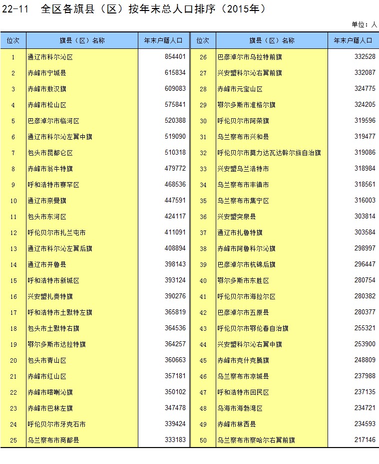 22-11 全区各旗县(区)按年末总人口排序(2015年)