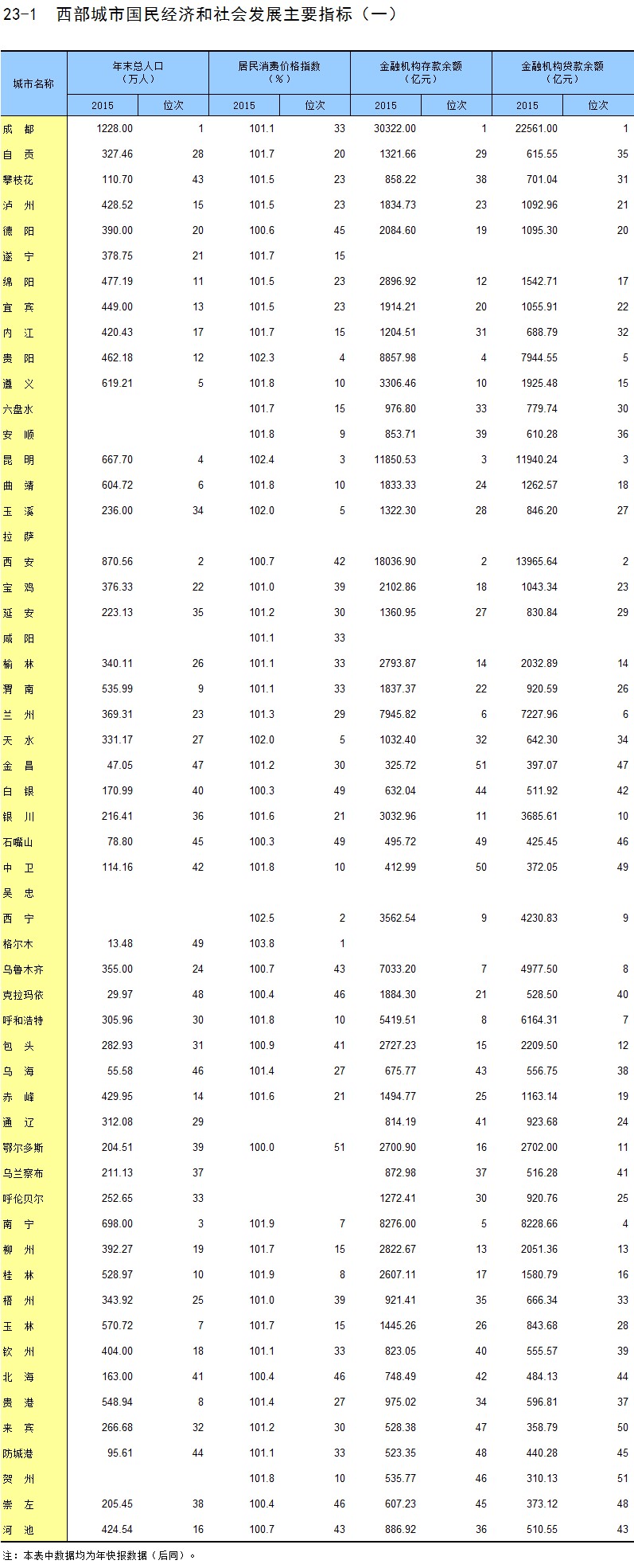 23-1 西部城市国民经济和社会发展主要指标(一)