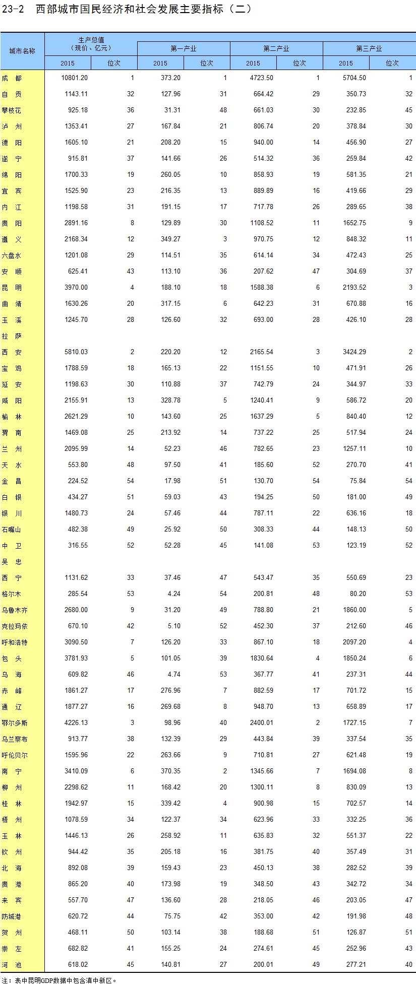 23-2 西部城市国民经济和社会发展主要指标(二)