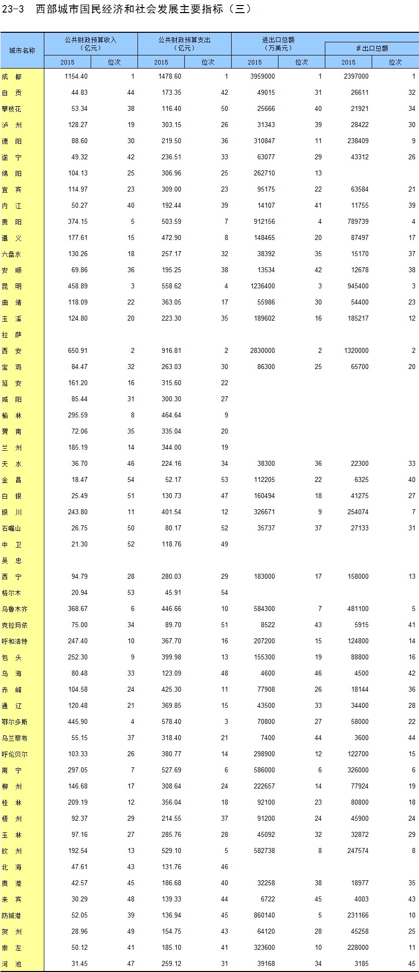 23-3 西部城市国民经济和社会发展主要指标(三)