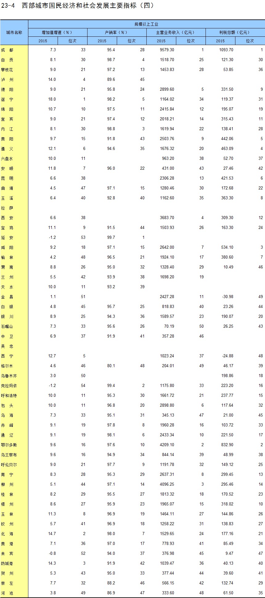 23-4 西部城市国民经济和社会发展主要指标(四)