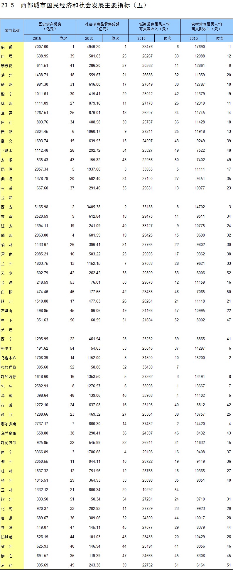 23-5 西部城市国民经济和社会发展主要指标(五)