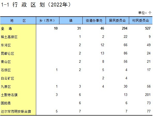 1-1 行政区划(2022年)