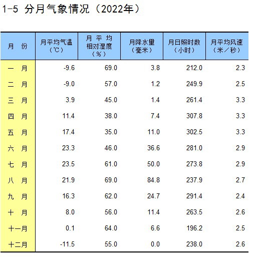 1-5 分月气象情况(2022年)