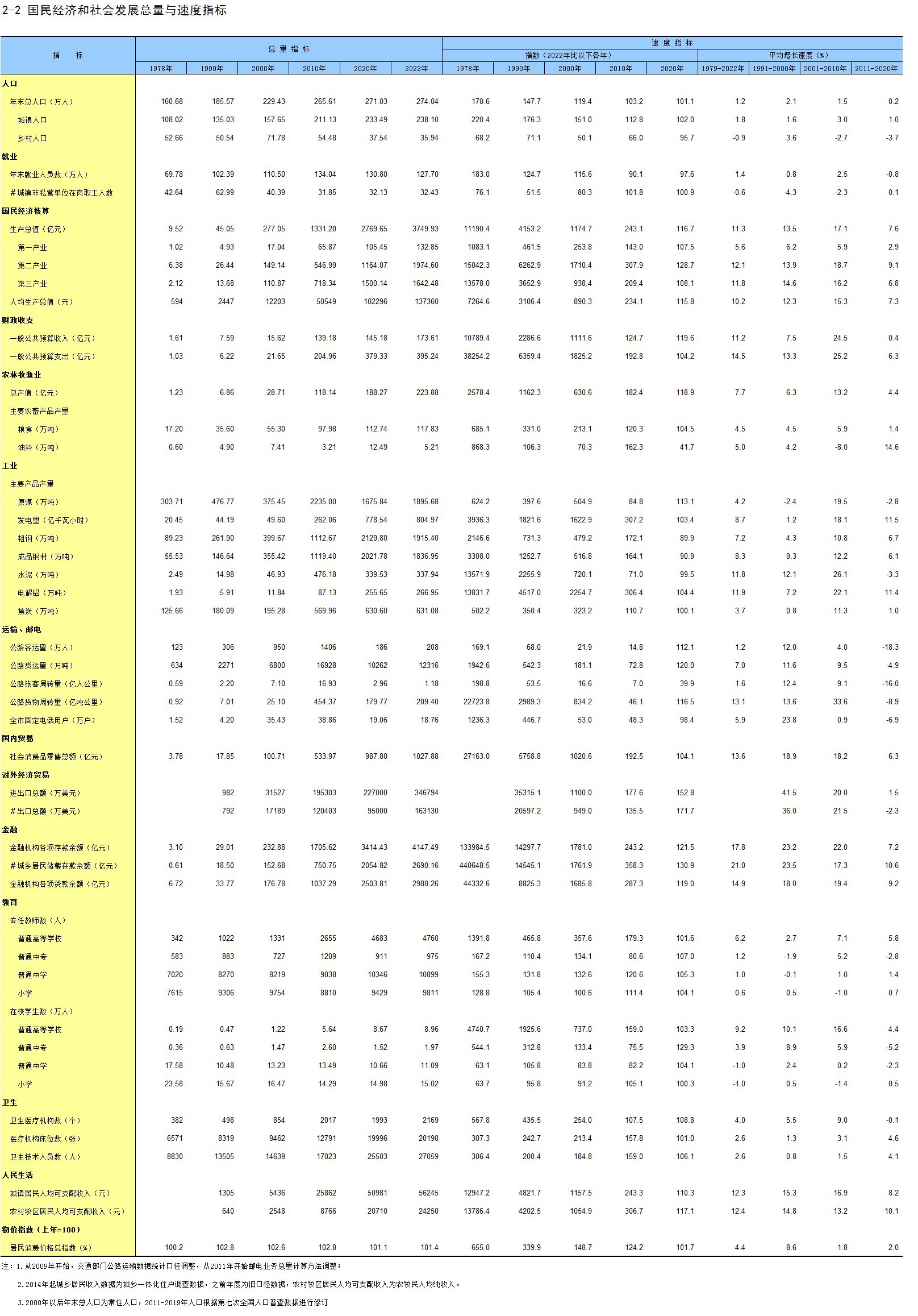 2-2 国民经济和社会发展总量与速度指标