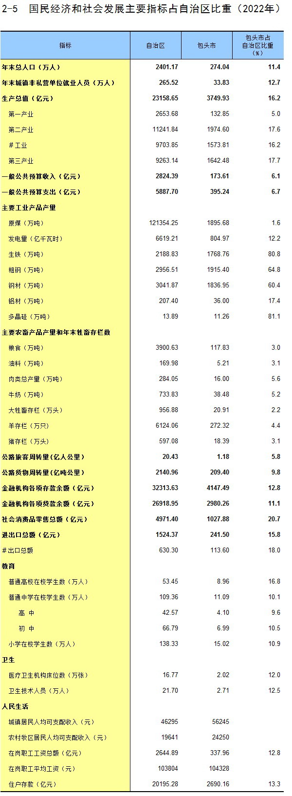 包头市2022年国民经济和社会发展统计公报