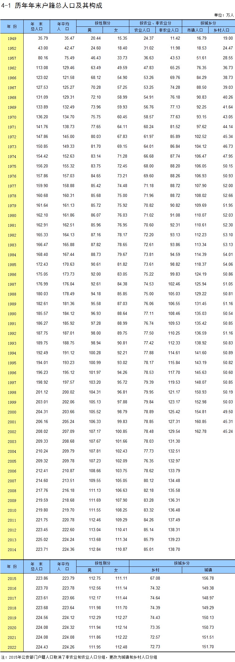 4-1 历年年末户籍总人口及其构成
