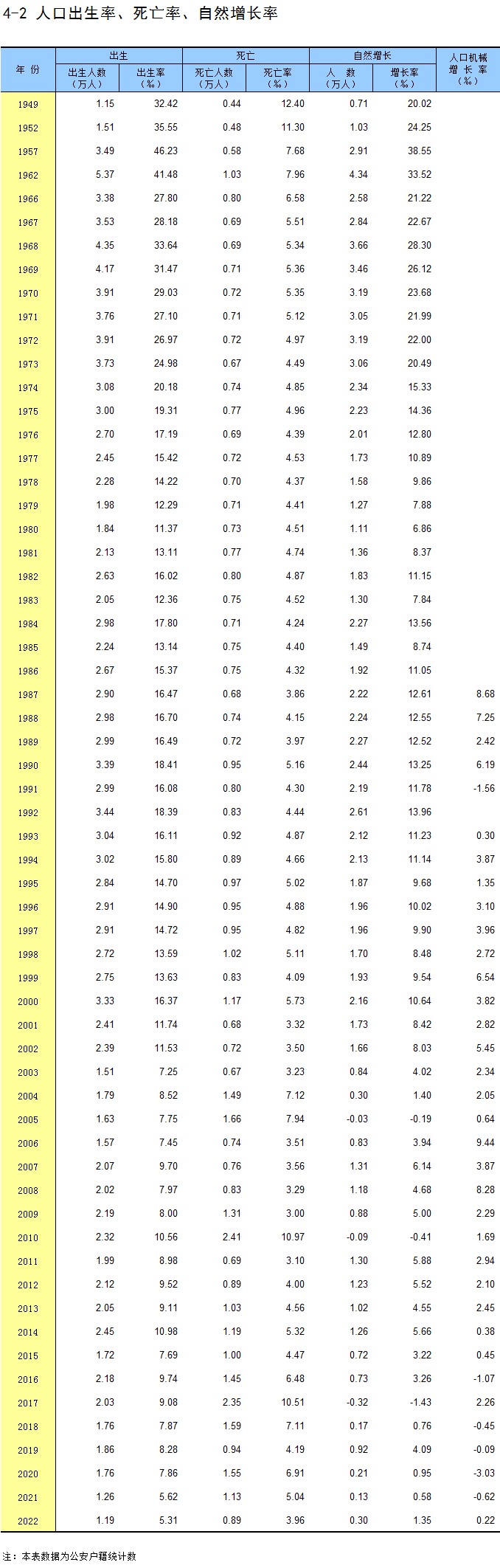 4-2 人口出生率、死亡率、自然增长率