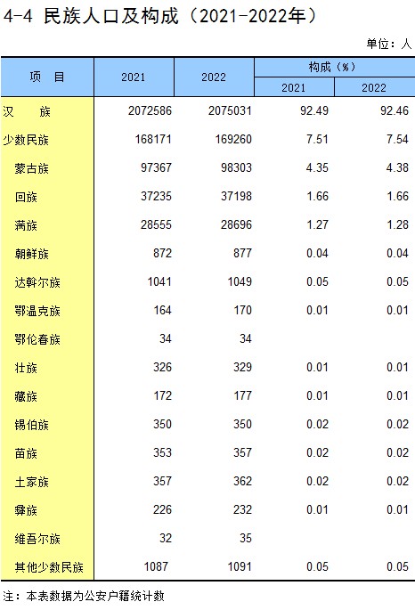 4-4 民族人口及构成(2021-2022年)