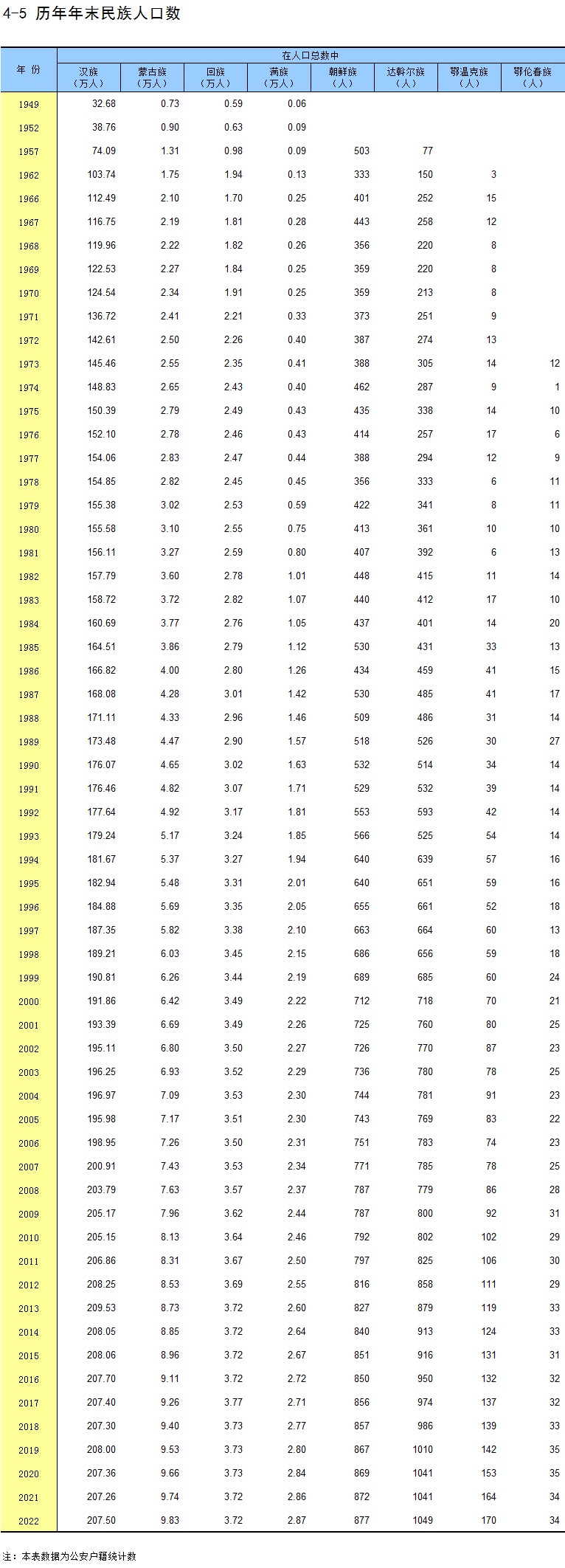 4-5 历年年末民族人口数