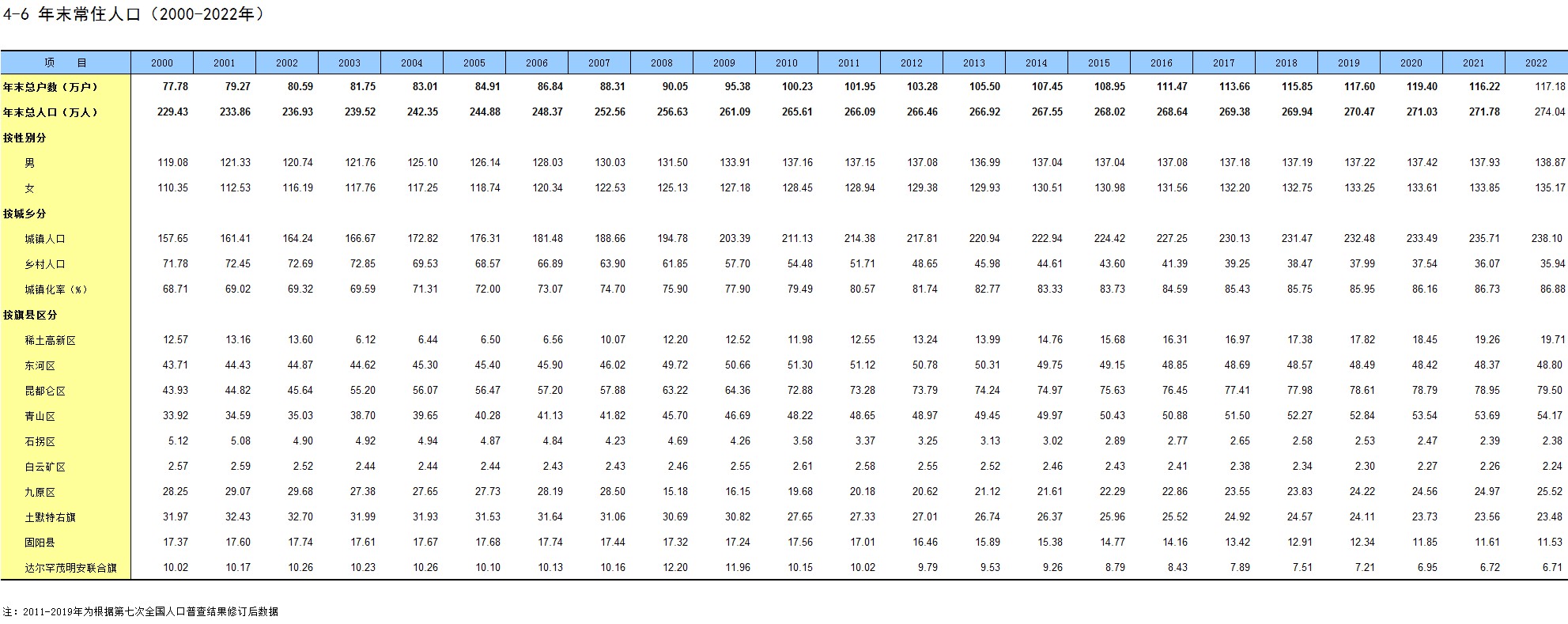 4-6 年末常住人口(2000-2022年)