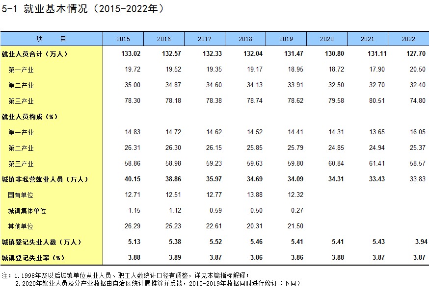 5-1 就业基本情况(2015-2022年)