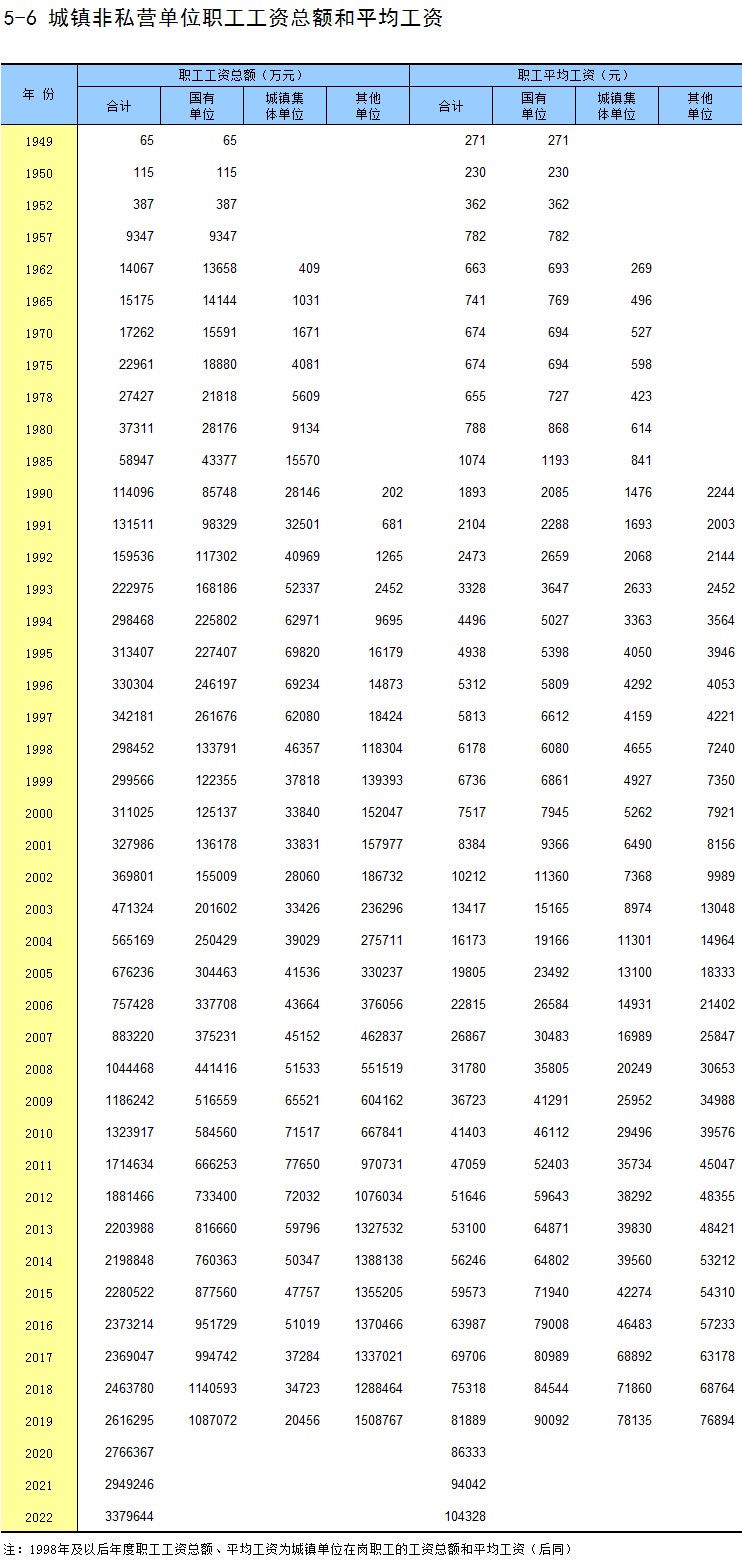 5-6 城镇非私营单位职工工资总额和平均工资