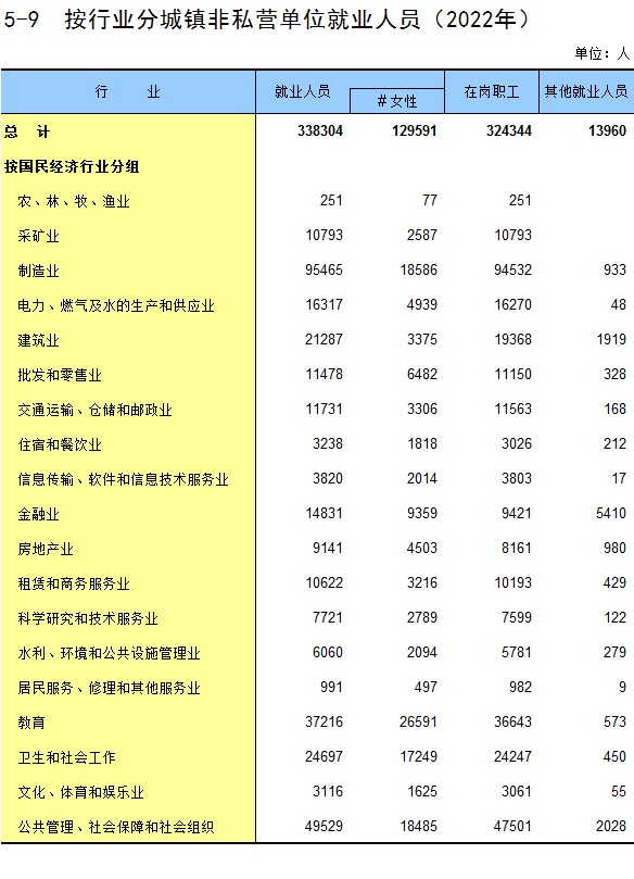 5-9 按行业分城镇非私营单位就业人员(2022年)
