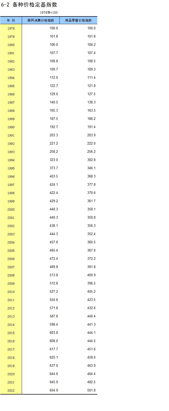 6-2 各种价格定基指数