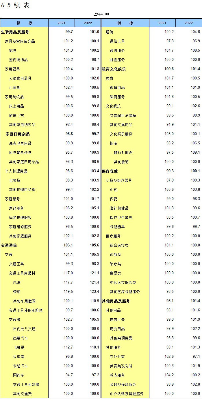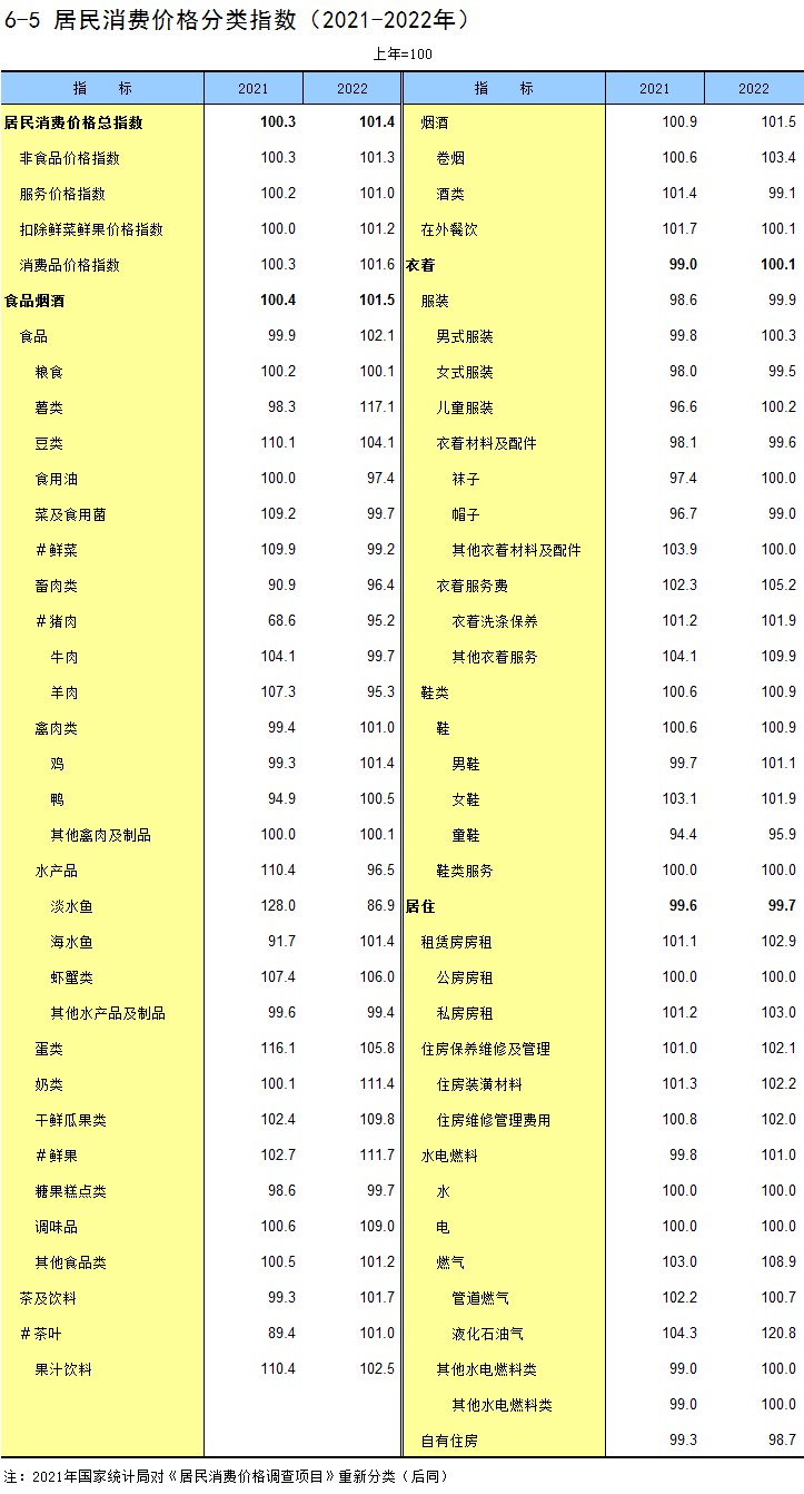 6-5 居民消费价格分类指数(2021-2022年)