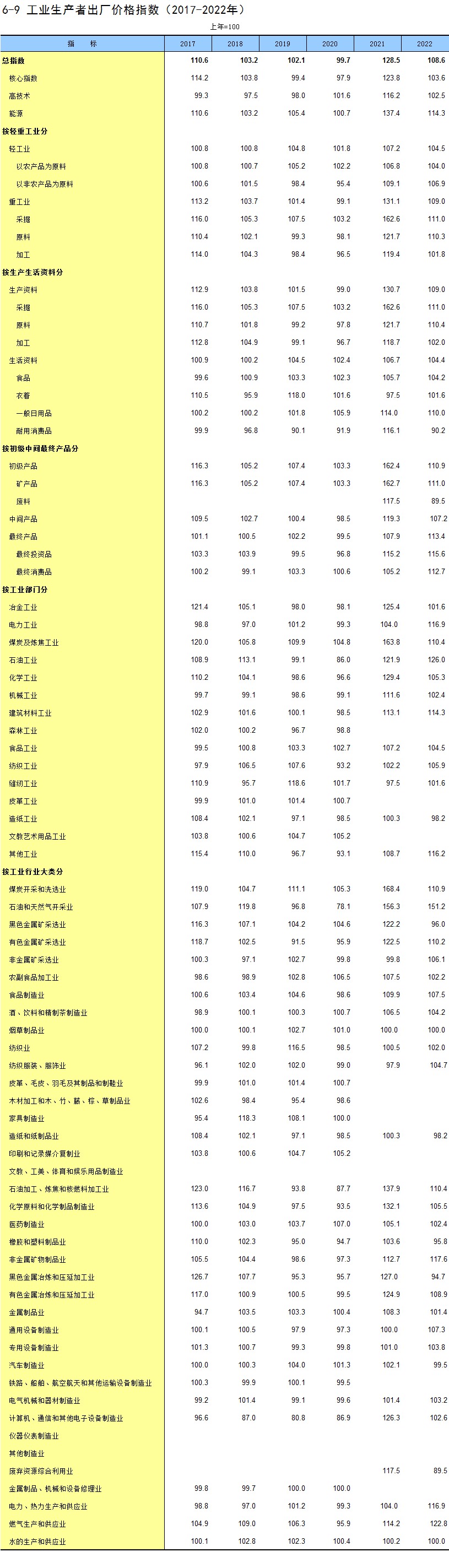 6-9 工业生产者出厂价格指数(2017-2022年)