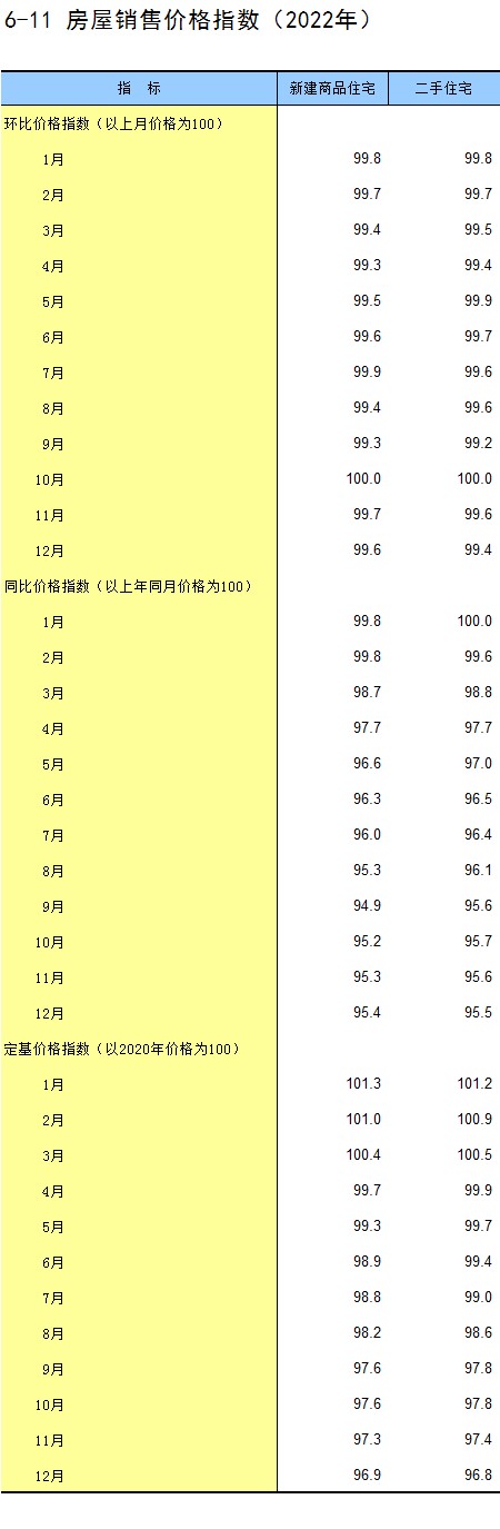 6-11 房屋销售价格指数(2022年)