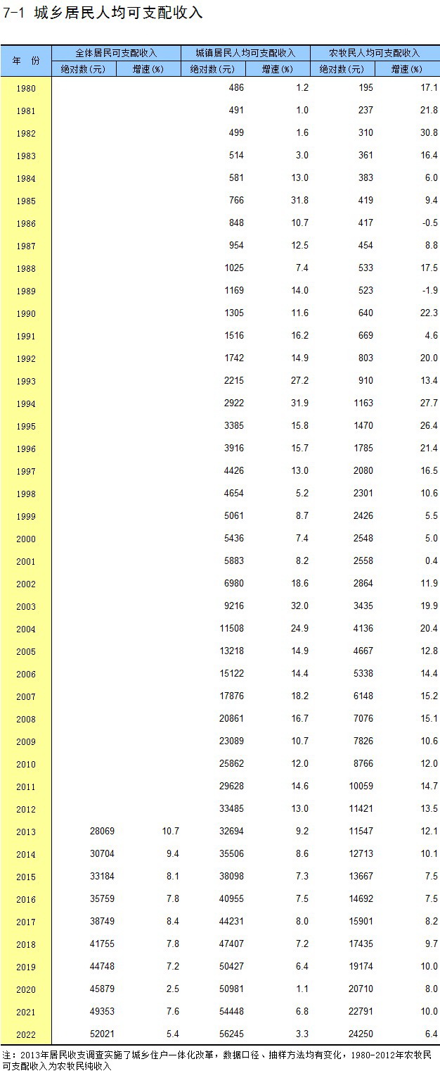 7-1 城乡居民人均可支配收入