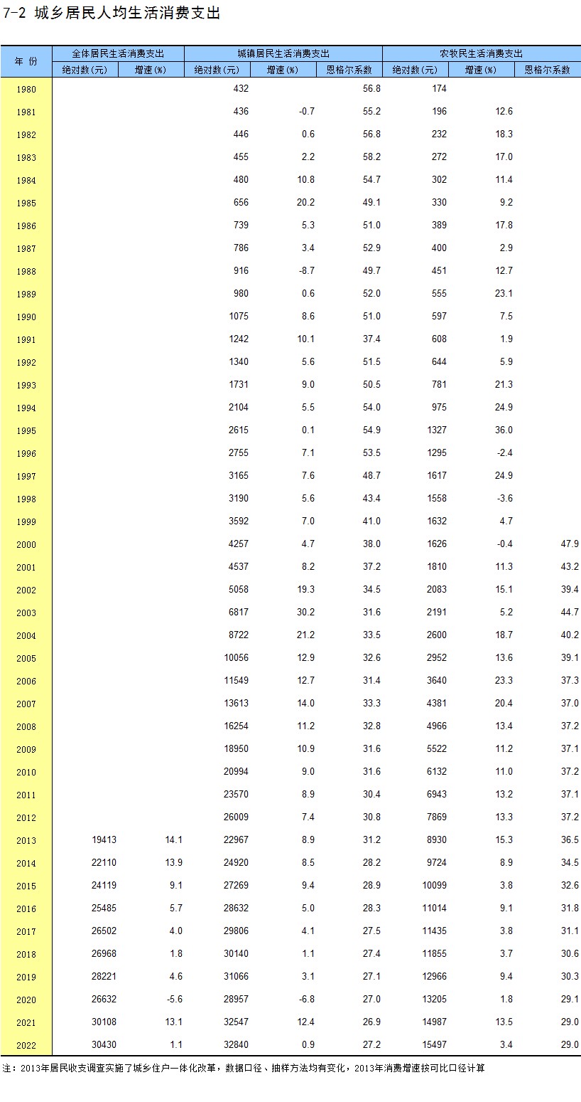 7-2 城乡居民人均生活消费支出