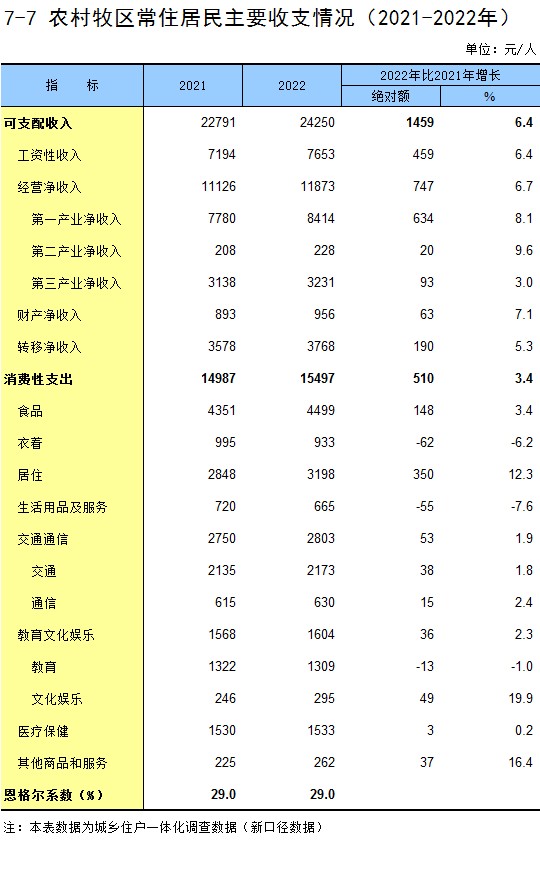 7-7 农村牧区常住居民主要收支情况(2021-2022年)