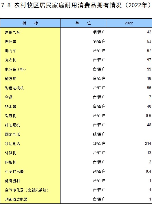 7-8 农村牧区居民家庭耐用消费品拥有情况(2022年)