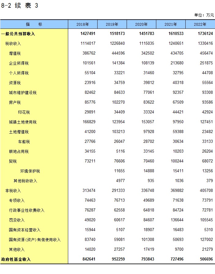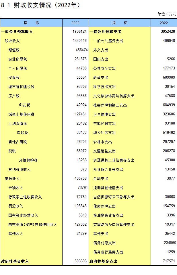8-1 财政收支情况(2022年)