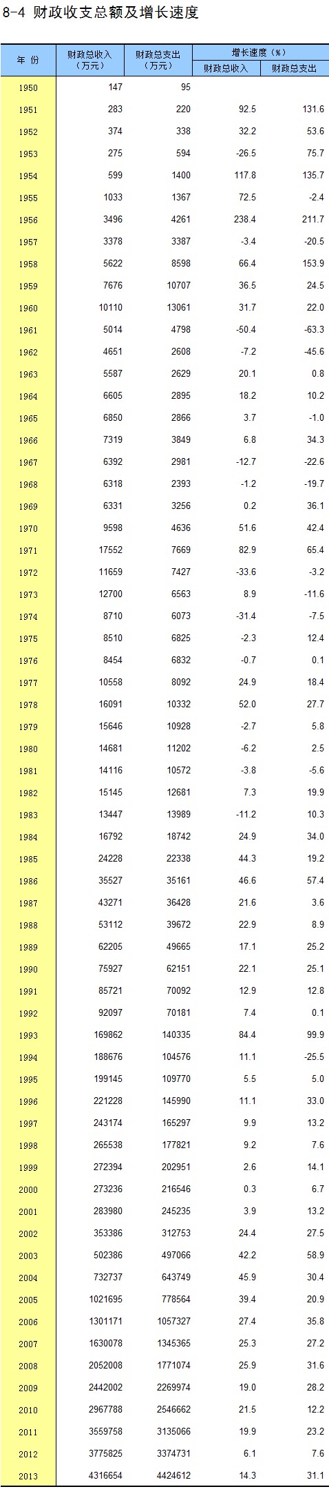 8-4 财政收支总额及增长速度