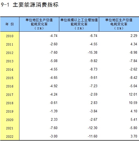 9-1 主要能源消费指标