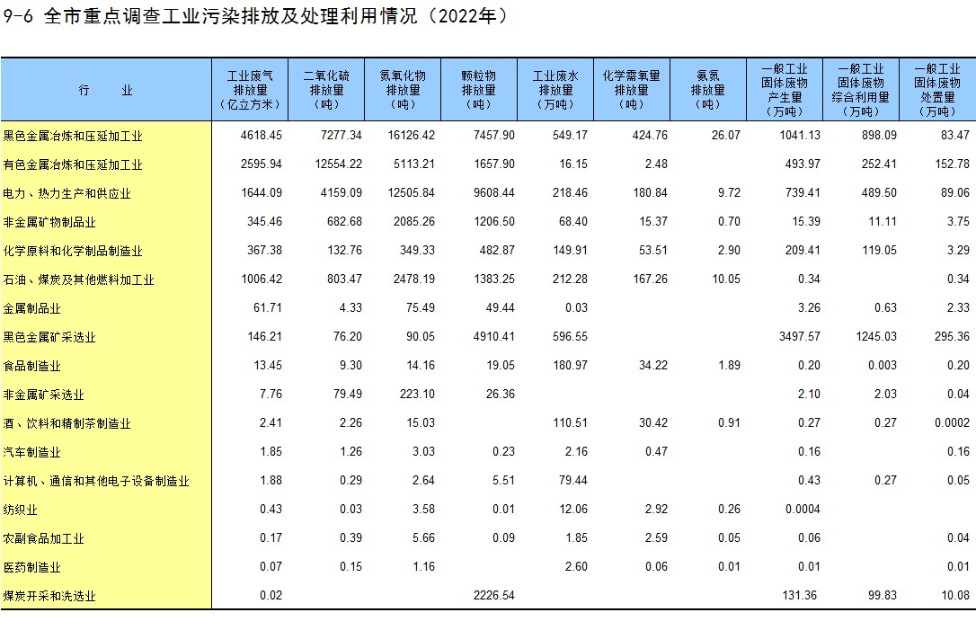 9-6 全市重点调查工业污染排放及处理利用情况(2022年)