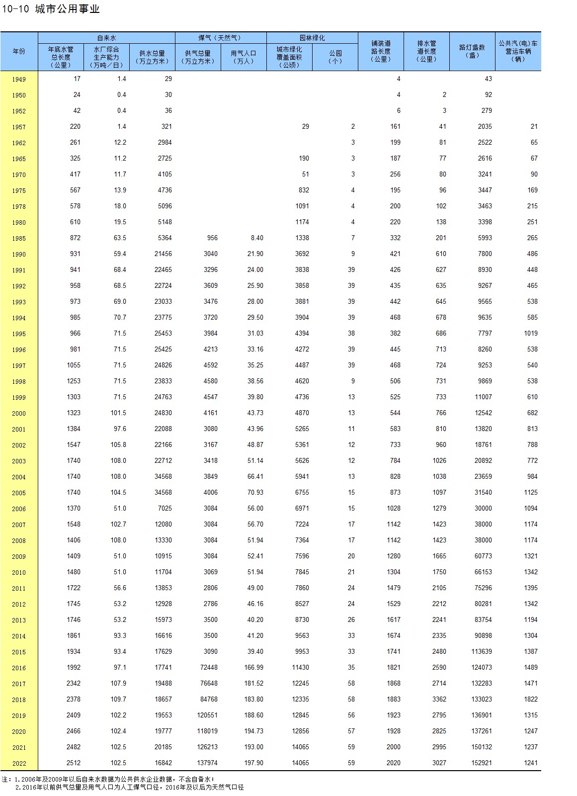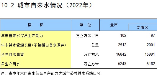 10-2 城市自来水情况(2022年)