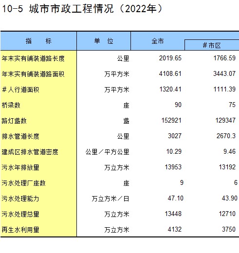 10-5 城市市政工程情况(2022年)